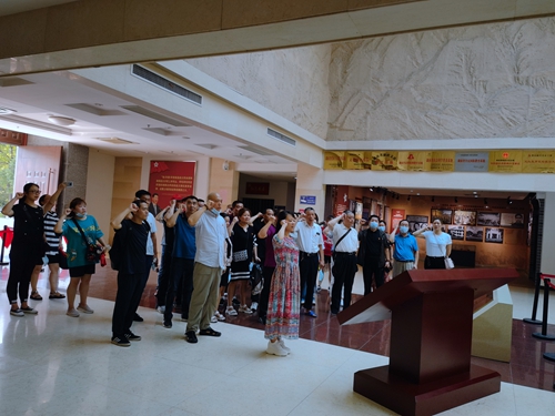 益陽湘運(yùn)集團(tuán)股份有限公司機(jī)關(guān)二黨支部書記龍陽在湘南起義紀(jì)念館帶領(lǐng)大家重溫了《黨章》。