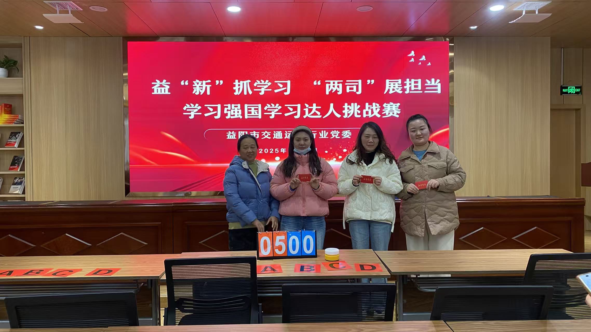 12月5日,益陽(yáng)湘運(yùn)投資控股股份有限公司黨委派出的2名黨員,在市交通運(yùn)輸行業(yè)黨委組織的“學(xué)習(xí)強(qiáng)國(guó)”學(xué)習(xí)達(dá)人挑戰(zhàn)賽中獲獎(jiǎng)。