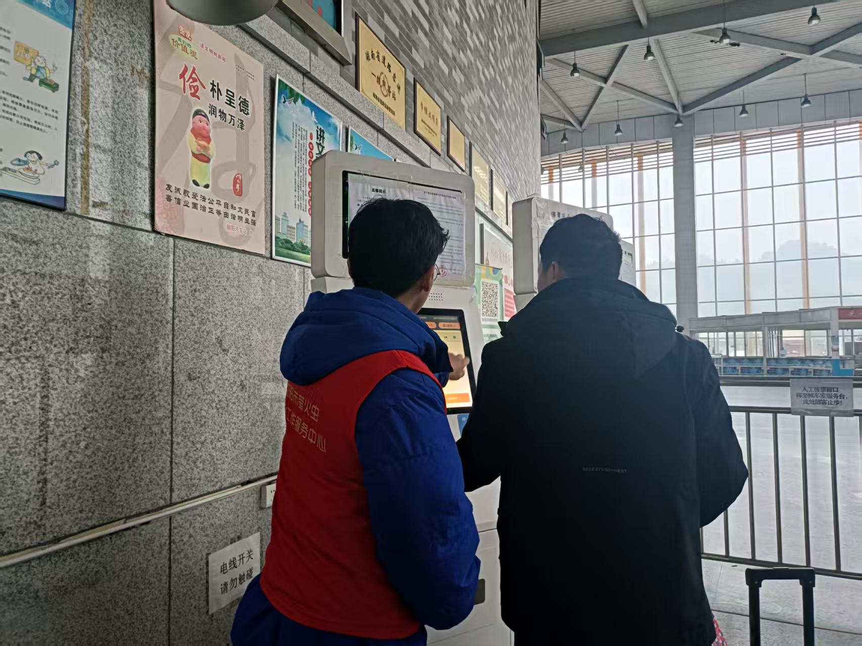 2月13日9:00,朝陽(yáng)汽車站進(jìn)站處一個(gè)身穿紅馬甲的“工作人員”正在自助售票機(jī)前指導(dǎo)旅客買票。這是外事旅游運(yùn)輸分公司聯(lián)合益陽(yáng)螢火蟲社會(huì)工作服務(wù)中心在春運(yùn)期間開(kāi)展的“暖冬行動(dòng) 情滿旅途”春運(yùn)志愿服務(wù)。