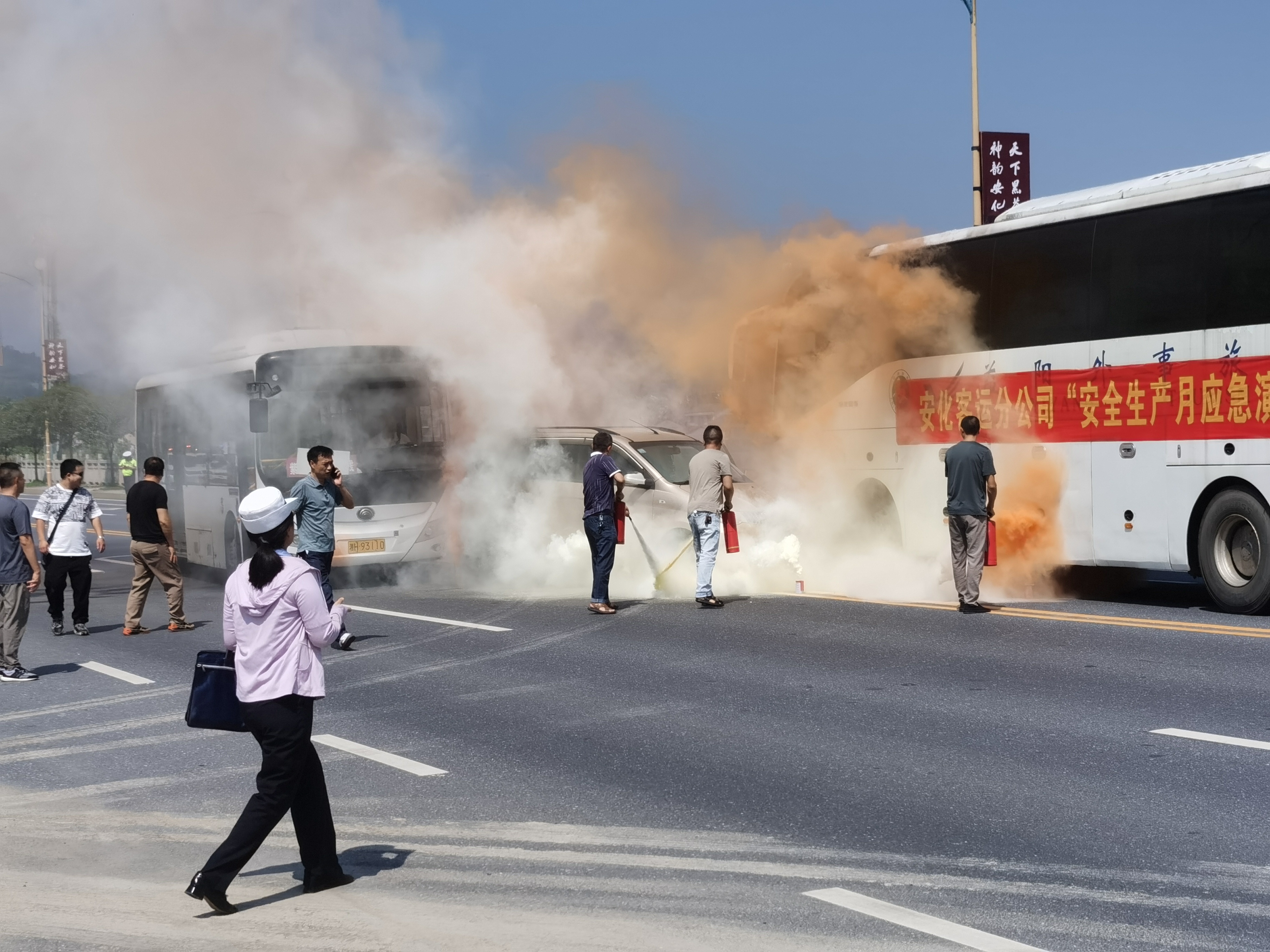 “事故”突發(fā)后,公司安全科骨干組成的“救援隊”陸續(xù)將被困乘客成功疏散到安全位置,撲滅“大火”;醫(yī)護人員迅速到達(dá)現(xiàn)場救治受傷人員;同時交警接到報案后立即趕到事故地,進行細(xì)致勘查、固定相關(guān)證據(jù)、清理現(xiàn)場,有序恢復(fù)交通順暢……整個演練過程井然有序、多部門配合反應(yīng)迅速。