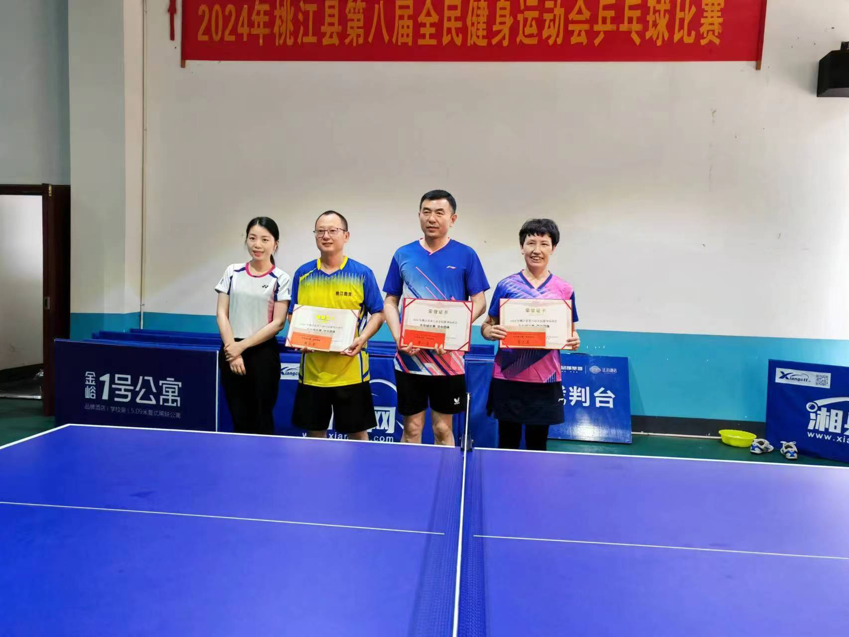 5月25日,桃江縣城鄉(xiāng)客運(yùn)有限公司乒乓球隊(duì)榮獲桃江縣第八屆全民健身乒乓球比賽混合團(tuán)體第一名,隊(duì)員羅立華獲男雙第一名、混雙第三名的好成績(jī)。該公司組織了4名員工參賽,總經(jīng)理伍曉群帶隊(duì)。