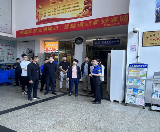 10月16日,益陽市資陽區(qū)人民政府區(qū)長黃瑛、資陽區(qū)交通運(yùn)輸局局長段敏堯、資陽區(qū)道路運(yùn)輸服務(wù)中心主任楊與等一行到資陽汽車站督查國家衛(wèi)生城市復(fù)審工作。公司經(jīng)理高佑青等陪同。