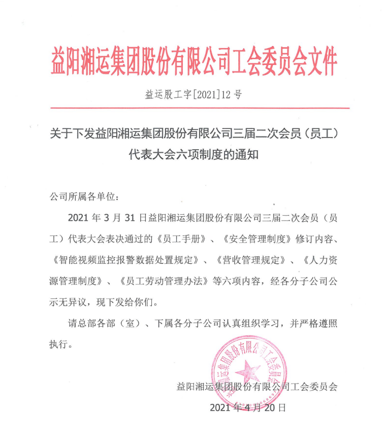 關(guān)于下發(fā)職代會(huì)通過的制度的通知