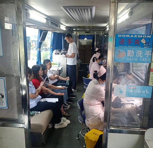 當(dāng)日一大早,獻(xiàn)血員工在毛斌帶領(lǐng)下集中到達(dá)采血點(diǎn),大部分員工都是第一次參與獻(xiàn)血,既興奮又緊張。填表、體檢、化驗(yàn)、等候、抽血、休息,所有流程都在醫(yī)護(hù)人員的要求和配合下井然有序完成。