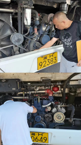 7月11日,外事旅游運輸分公司副經(jīng)理劉亮、安全副科長劉鋒對公司47臺車輛進行了安全隱患大排查,特別檢查了車輛電線、電路、油路、氣路、輪胎和滅火器等狀況,防止機械故障和高溫天氣引起的車輛自燃、爆胎等事故發(fā)生。(唐秋月)